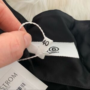 NWT camisole by MM6 maison margiela. Gathered at one side for a beautiful drape. Silky material and features adjustable straps and signature white stitching in back. Hidden side zipper. V neckline. Lying flat armpit to armpit approx 16” across and top of shoulder to bottom hem approx 24” at shortest point. All measurements are approximate. Italian size 40 which is approx US size 4.