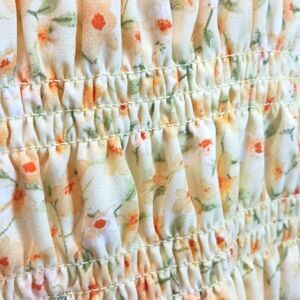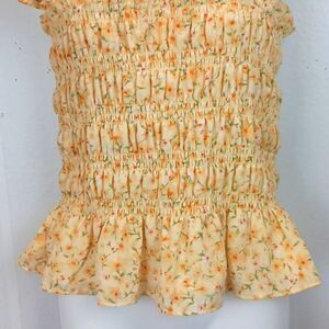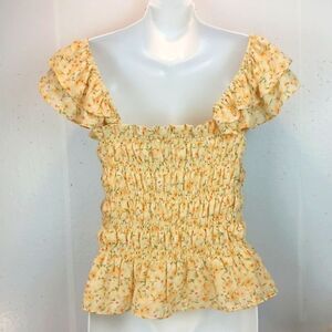 Mmcmmcmm boho Cottagecore floral yellow smocked bodice ruffle cap sleeve top XL