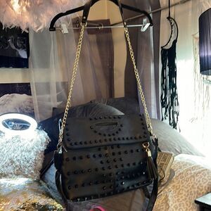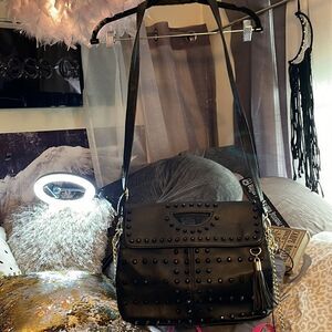 Black faux leather w/ black pyramid/ cone cylinder stud detail(very rock goth glam punk moto )