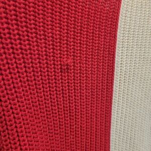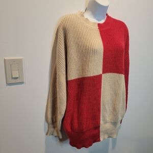 mng cotton oversized slouchy red beige colorblock balloon sleeves knit pullover sweater. pre owned no rips or stains. small snag
