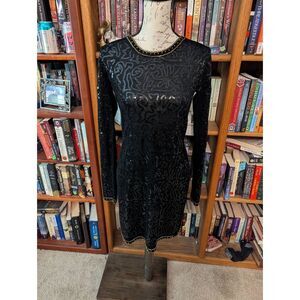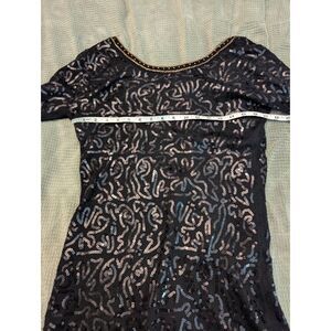 Mng wool and silk black sequin long sleeve cocktail dress sz m euc low back