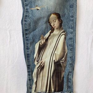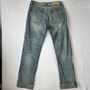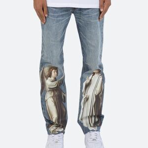 Mnml Angel Jeans Mens Size 28 Waist Streetwear Straight Leg Cuffed 100% Cotton. Very good pre-owned condition, no flaws. You can uncuff these and wear them full length like the model photo as well.