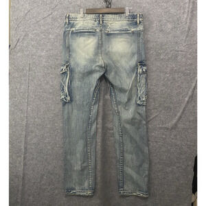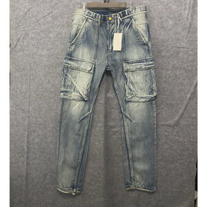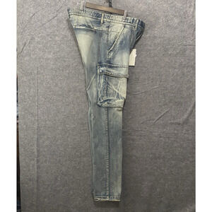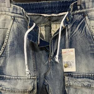 Mnml Cargo Jeans Mens 36 x 33 Light Blue Distressed Fade Drawstring NWT