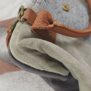 Mo & Co Bag Purse Carry On Weekender Suede Leather Gray Blue Mixed Media Boho