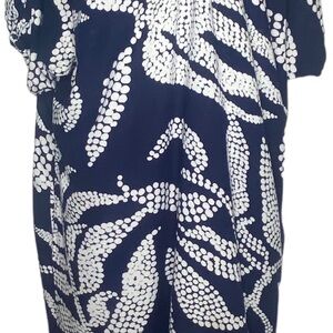 Mo Woman Abstract Print Casual Dress M Navy Blue White V-Neck Short Sleeves