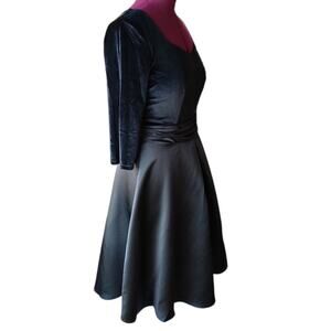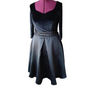 MoDa of New York Black Velvet & Satin Sweetheart Dress Large Retro Classic DessV