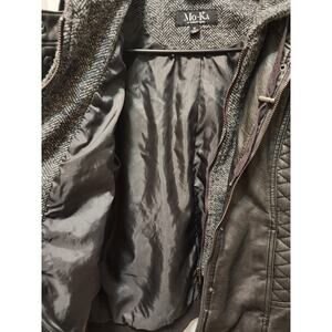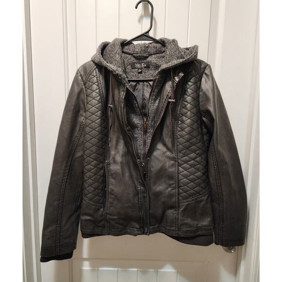 Mo-Ka Meriam Knit Hood Faux Leather Jacket Russian Dark Gray Heavy Weight Size M