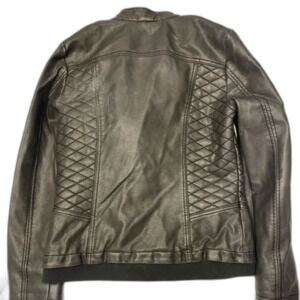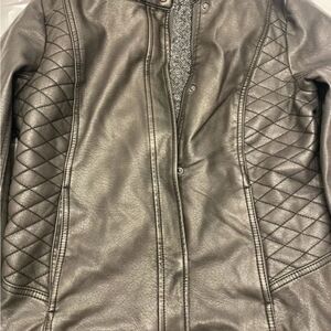 Stylish faux quilted leather buttery soft lightweight jacket with knit hood for added protection