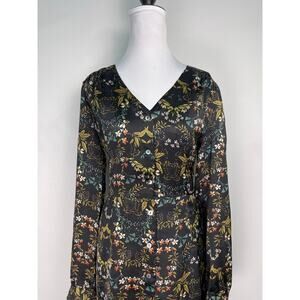 Mo:Vint Black Floral Long Sleeve Dress Size Medium Elegant & Feminine