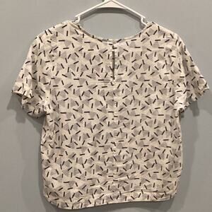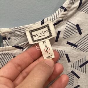 Mo:Vint Womens Linen Blend Shirt Medium M White Navy Blue Beachy Boho Boxy Top