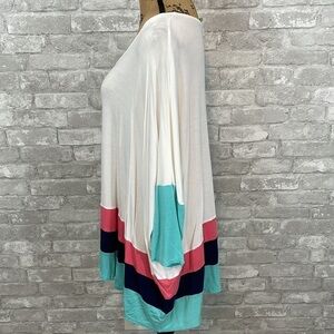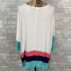 Moa Colorblock oversized Tee 3/4 sleeves colorblock stripes of cream, navy, mint & coral