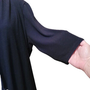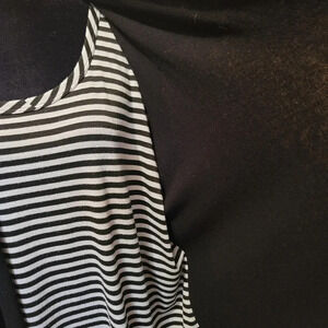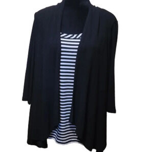 Moa Moa 2 in 1 Black/white Striped tank with attached black sweater. 3/4 sleeve