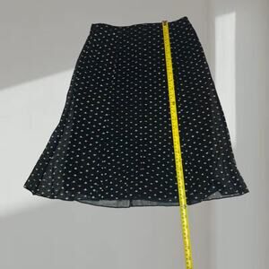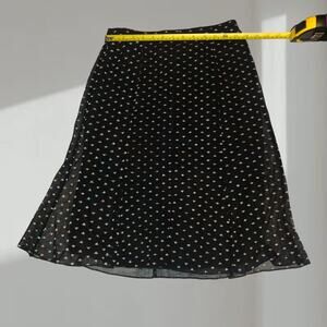 Cute and lightweight Moa Moa skirt featuring a black sheer overlay with tiny pastel floral/bee-style embroidered dots throughout. Midi length with a flowy silhouette and a soft, stretchy lining for comfort. Easy to dress up or down for spring, summer, or casual everyday wear.