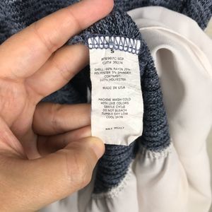 Moa Moa Blue Cold Shoulder Long Sleeve Sweater Top Ruffle Hem. 66% Rayon, 29% Polyester, 5% Spandex.