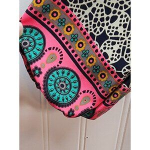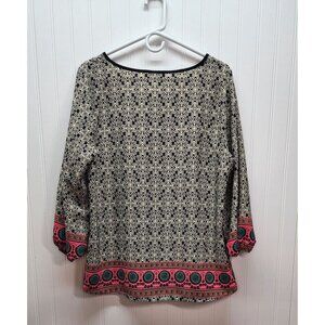 This elegant bohemian top features a detailed lace overlay complemented by a vibrant border design. The 3/4 sleeves and relaxed fit offer a comfortable yet stylish silhouette, making it a versatile piece for various settings. The quality construction and eye-catching patterns add a touch of sophistication to any wardrobe.
