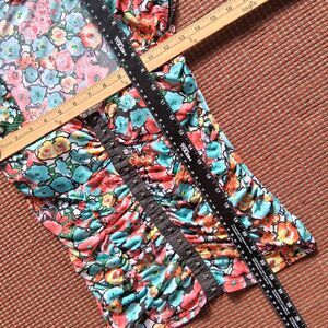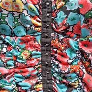 Moa Moa Corset Style Scoop Neck Top Floral Hook+Eye Front Size Small Y2K Stretch