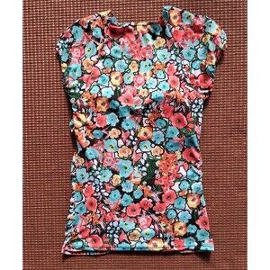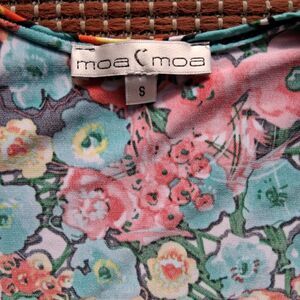 The Moa Moa Corset Style Scoop Neck Top in size small is a vibrant and stylish Y2K-inspired piece perfect for various occasions like travel, parties, or casual wear. Featuring a unique hook and eye front closure, this top offers a slim fit with built-in bra support for added comfort. The floral pattern and colorful design give off a hippie and bohemian vibe, making it a standout choice for the summer and spring seasons. Made with stretch fabric, this lightweight blouse from Moa Moa is easy to care for and machine washable, adding convenience to your wardrobe.