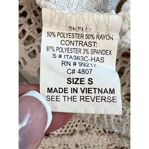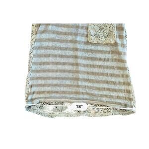 Moa Moa Cream Tan Stripe Feminine Lacy Twist Cap Sleeve Top sz Small. Beautiful silhouette with lace details and ultra soft fabric. Polyester Rayon blend. Machine washable. Item in excellent condition. No known rips, tears, holes, stains or defects.