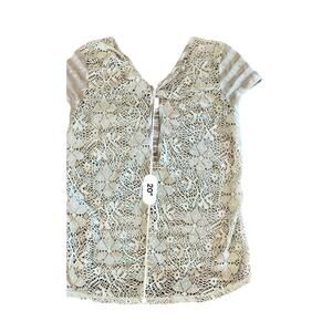 Moa Moa Cream Tan Stripe Feminine Lacy Twist Cap Sleeve Top sz Small