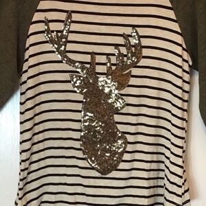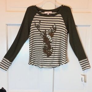 Moa Moa Girls Gray Striped Sequin Reindeer Christmas Long Sleeve Shirt Size Med. New with tag. From smoke free home.