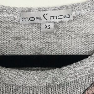 Moa Moa Gray Floral Asymmetrical Hem Knit Sweater