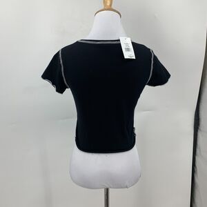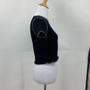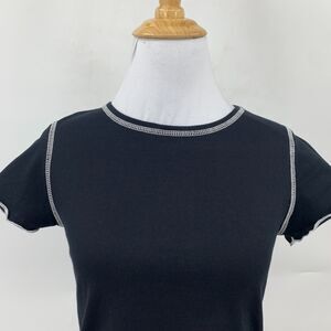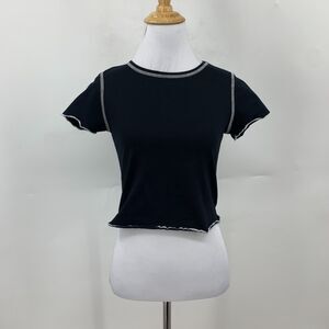 MOA MOA LETTUCE HEM SHIRT GIRLS L BLACK WHITE STITCH COTTON CREW SHORT SLEEVE