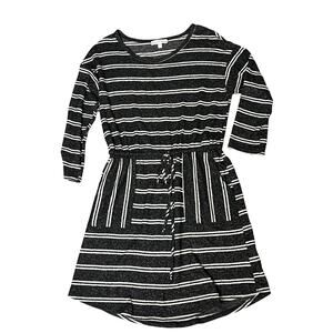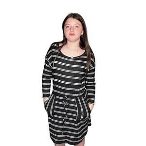 Moa Moa SWEATER DRESS Womens SM Black White Striped Knit Pockets Tie Waist Belt