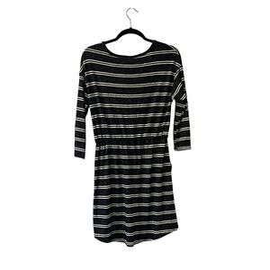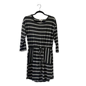 Moa Moa SWEATER DRESS Womens SM Black White Striped Knit Pockets Tie Waist Belt - Excellent Condition!