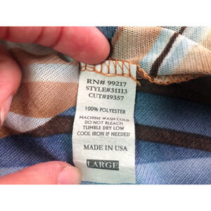 Moa Moa Size Large Geometric V-neck Top 90s Lettuce Edge Trim 3/4 Length Sleeve