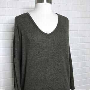 Moa Moa Small S Dark Olive Green Soft V Neck Top 3/4 Sleeve Made in USA Womens