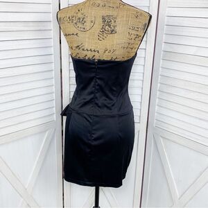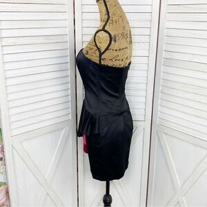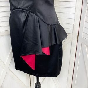 Moa Moa Strapless Colorblock Ruffle Mini Party Dress Black Pink Small