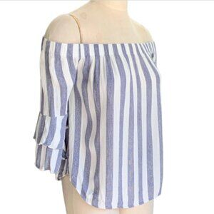 Moa Moa Top BOHO Off Shoulder 3/4 Bell Sleeve Sz S Striped Blue & White #80J