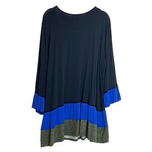 Moa Moa Womens Knit Tunic Size 1X Black Blue Green Animal Print Color Block