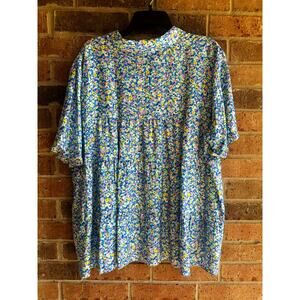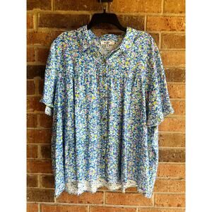Moa Moa Women's Multicolor Floral Short Sleeve Button Front Blouse Size 3X NWT