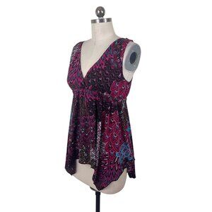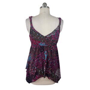 Moa Moa Y2K Babydoll Top Womens Larg Purple Paisley Sleeveless Whimsigoth Artsy