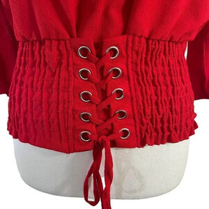 Moa Moa Y2K Ruched Elastic Hem Lace Up Bright Red Blouse Size Medium