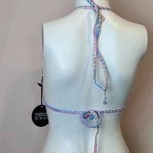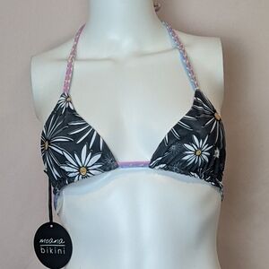 Moana Bikini reversible bikini top with daisies and pink and blue stripes. New with tags