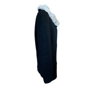 This gorgeous THICK, HEAVY Wool blend faux fur collar coat is designed by a French vintage designer Naf Naf and is a black quilted type fabric with a very soft PLUSH faux fur fabric collar!!!
