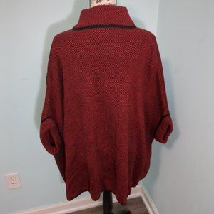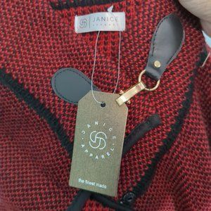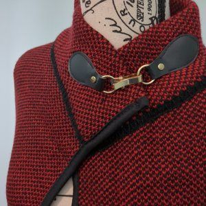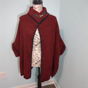 Women's Classy Open Front Cardigan Poncho new Faux Leather Collar & Gold Clasp Janice