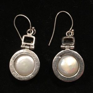 @kberleymitchell hi -- earrings are 1.5 inches long from the point at which the curve of post sits in the hole in lobe to bottom most point of round silver rim. Let me know if you'd like me to send a photo of earring in ear. Thank you for your inquiry!