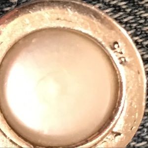 Mobe pearl set in beveled .925 sterling silver with small cushion cut topaz accent set above pearl.
