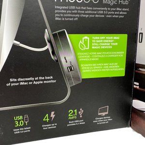 The Mobee Magic Hub is a compact additional USB charging port attached to your iMac