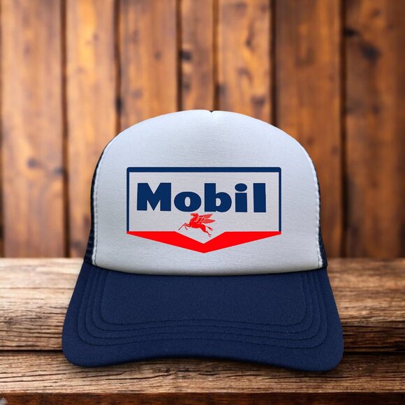 Mobil Oil Mens Trucker Hat Navy Snapback 1950s Vintage Logo Oil Gas Baseball Cap