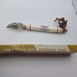 Vintage Metal and plastic promotional bottle opener with box. Box condition may vary.