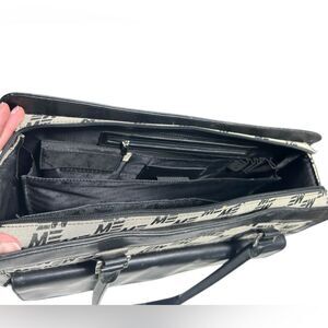Stylish and functional, this Mobile Edge vintage laptop bag combines retro charm with practicality. Featuring a monogram ME logo canvas design accented with black leather trim, this bag is perfect for work, school, or travel. It includes multiple compartments and pockets to keep your laptop, documents, and accessories organized. The durable construction and timeless design make this bag a versatile addition to your collection.