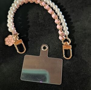This elegant phone chain features a beautiful combination of pink and pearl elements, perfect for adding a touch of sophistication to any outfit. Use phone gasket, picture shown last. The chain hooks to the phone gasket. Helps to prevent dropping the phone when the chain is slipped around the wrist or in the hand. Also click the opposite end to a belt or bag.