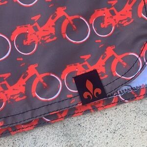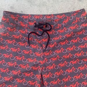 Mobylette Limited Edition Motorcycle Print Swim Trunks with Back Pocket and Tie Waist.