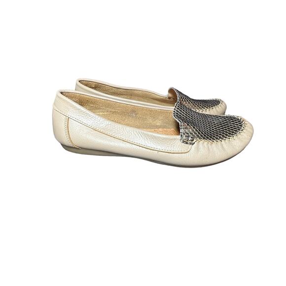 Mocassino Loafers size us 7.5 / 39 cream and bronze comfort shoe leather