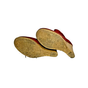 Moccasin Wedge Heel Bootie Women Sz 8 Red Faux Suede Faux Sherpa Lined by Viline