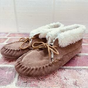 Moccassin Slippers Women Size 7 Suede w/ Sherpa Lined Booties Tan Ankle Booties